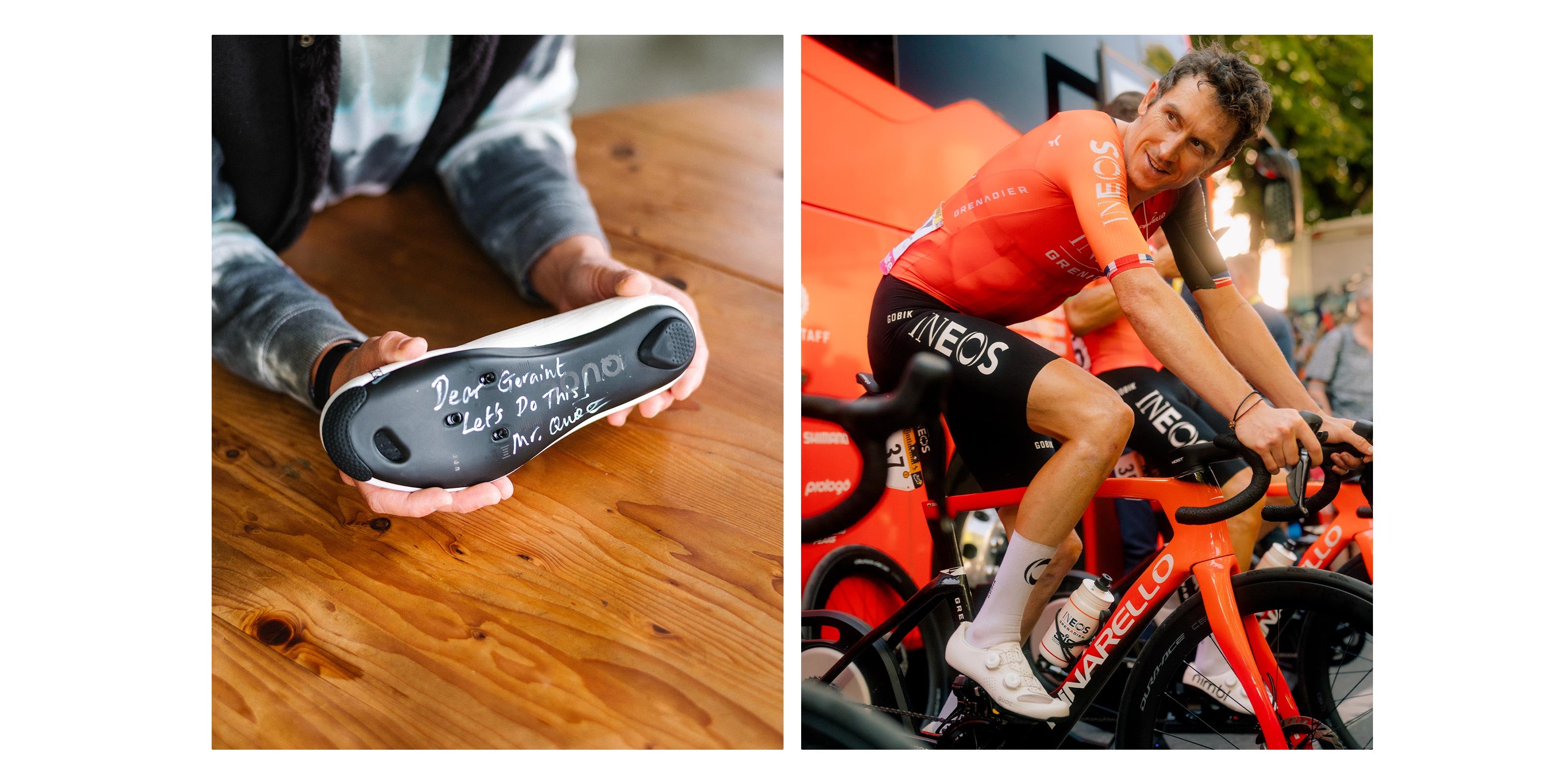 I've always believed if you write something down it will happen. By 2023, we had gathered a talented global team, all obsessed with bikes, and each playing a pivotal role in shaping the brand. I wrote them a note: “Next year, we will sign a World Tour Rider”. A few months later, we started our first season with Tour de France winner, Geraint Thomas.